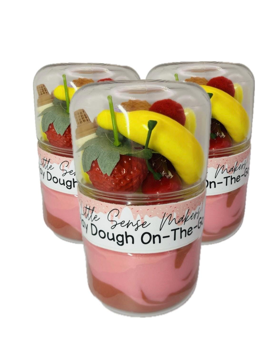 Scoop, swirl, and sprinkle with our Ice Cream-Themed Dough-on-the-Go Jar, packed with strawberry-scented playdough and sweet pretend treats. With a mini cone, fruit toppings, and a fun double-sided design, kids can craft sundaes and cones wherever they go!