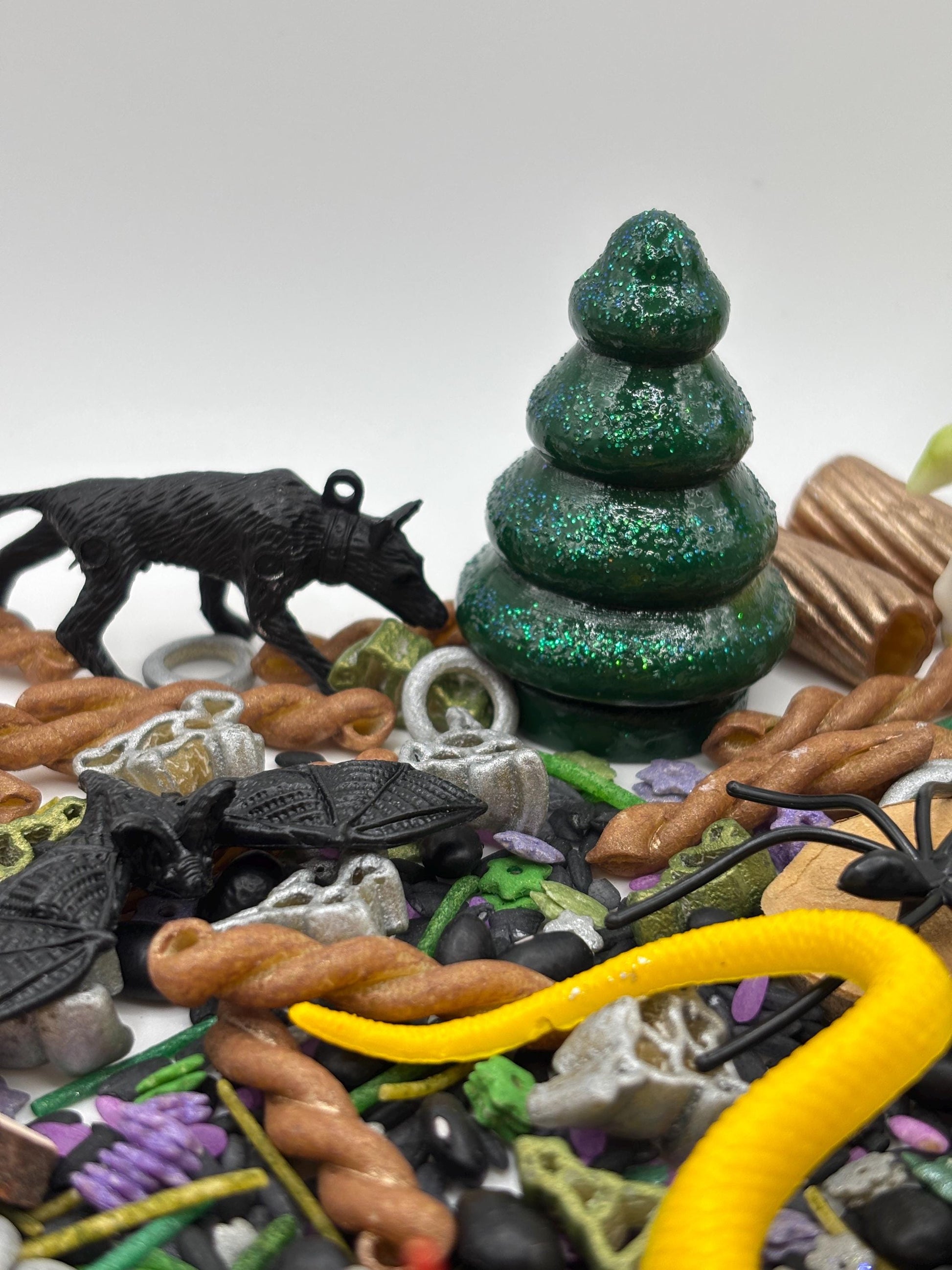 Step into a world of mystery and magic with this enchanting sensory play set, inspired by the deep, shadowy woods where mythical creatures roam and secrets whisper through the trees. Designed to spark curiosity and wonder, this set invites children to explore a moody, tactile landscape full of imagination and sensory discovery.