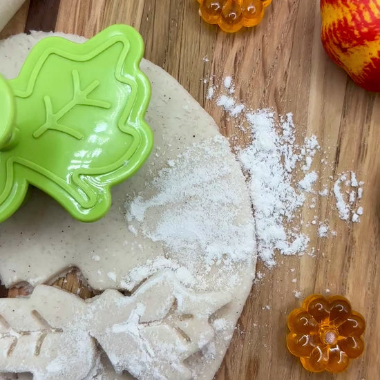 Bring the cozy scent of fall to playtime with our Pumpkin Pie Playdough Kit! This autumn-inspired sensory set includes two jars of soft, homemade playdough — a rich pumpkin pie filling and a warm sweet cinnamon crust. Kids can roll, cut, and bake up endless pretend pies with the included baking accessories, from wooden tools to festive cutters.